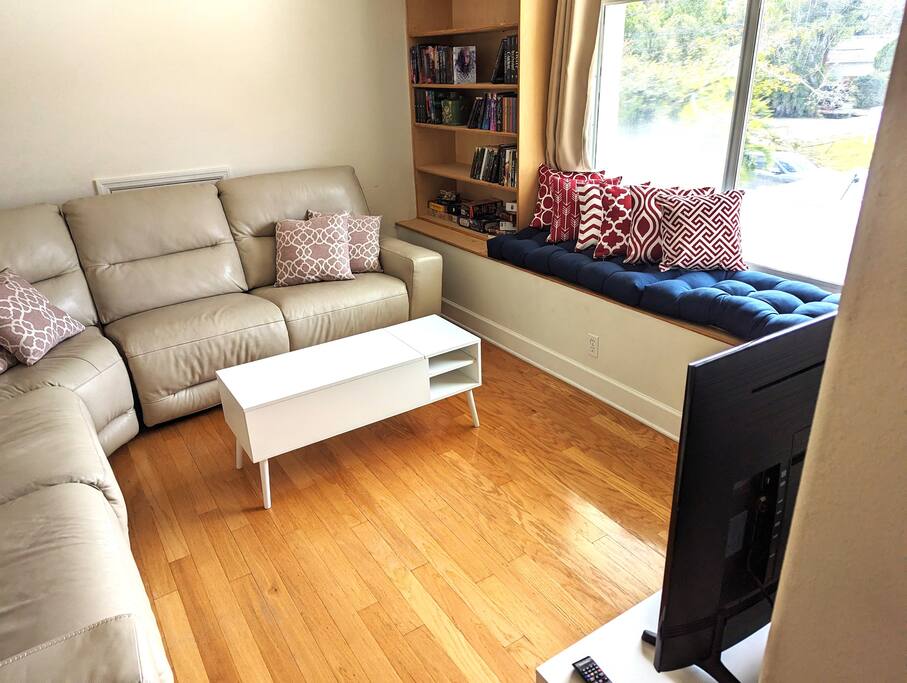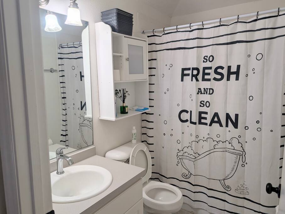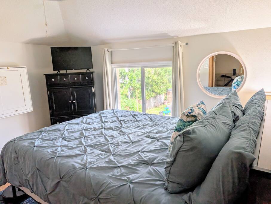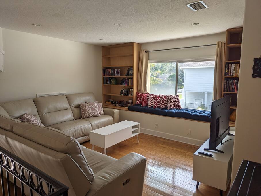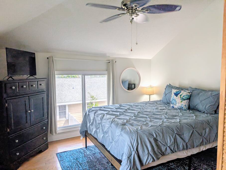 The two bedrooms are located upstairs with a loft area, I rent out both rooms. The bedrooms are 6 feet apart. The full bath is located between the rooms and will be shared with guests only. Kitchen and Laundry area are located downstairs. There is a closet with beach supplies by the front door. My room is located downstairs in the back of the house.